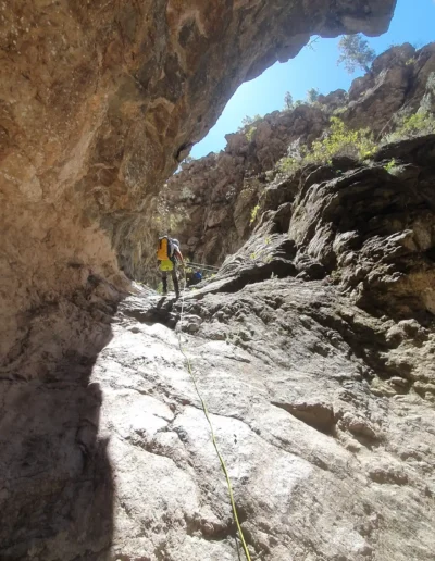 Situado en el municipio de Arico, este descenso te sorprenderá por el entorno en el que se encuentra, un pinar espectacular de vertiente sur por el que discurre este cauce repleto de formaciones y donde nos divertiremos haciendo toboganes, rapeles y destrepes… diversión asegurada!