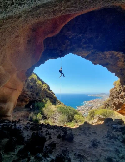 El salto de la campana nos regala una de las fotos más emblemáticas de toda la geografía canaria. ¿Te atreves con este rapel volado de 25 metros?